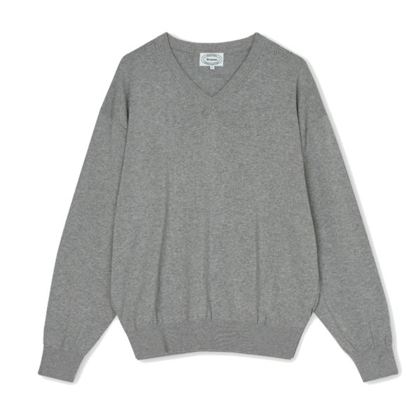 Cotton V-Neck Knit (Melange Grey)
