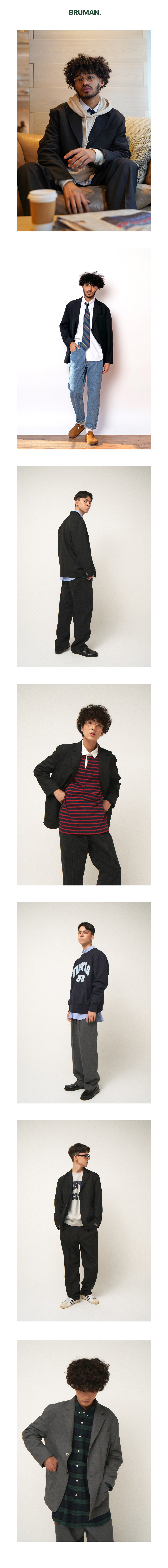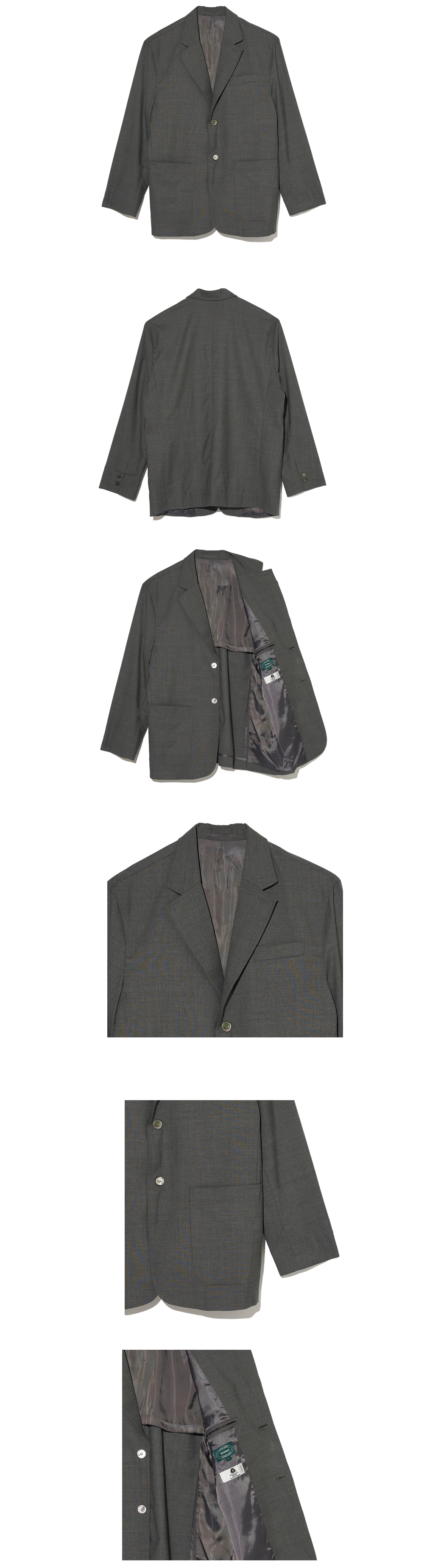 2버튼, 노 벤트, 노치드 라펠, 기본에 충실한 여유있는 실루엣의 자켓입니다.