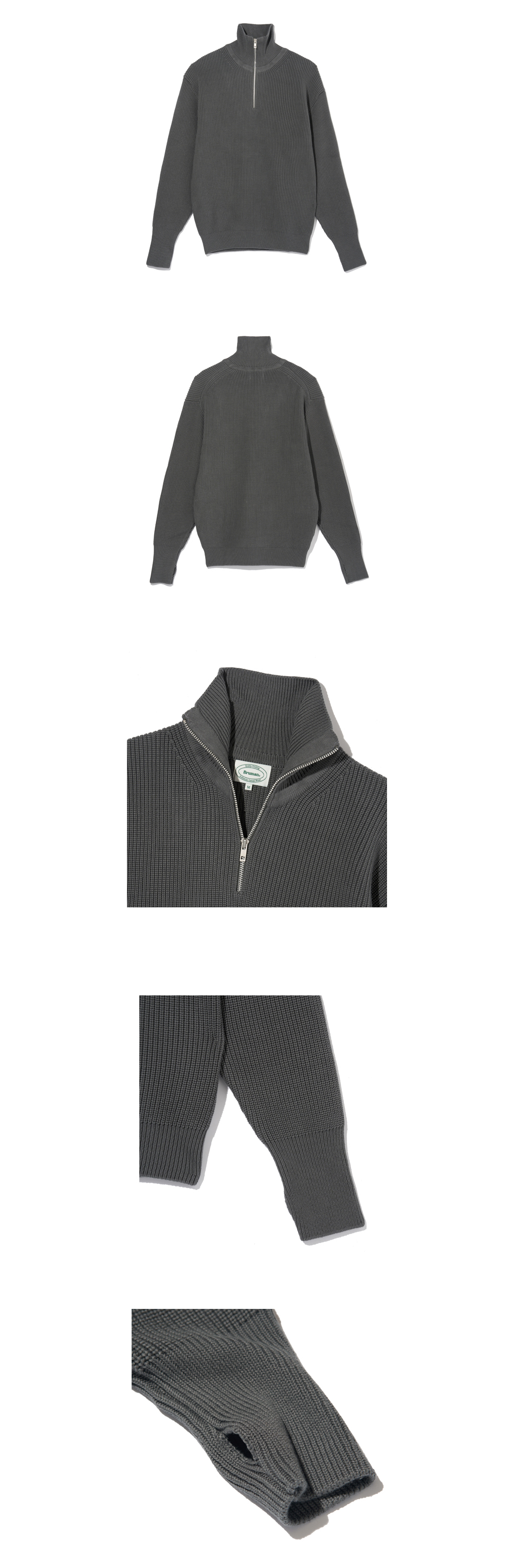 7게이지 하찌(Half Cardigan Stitch) 조직으로 짜임새가 좋고 착용시 묵직한 느낌을 줍니다. 내구성 좋은 YKK 社의 알루미늄 지퍼를 사용하였고 Thumb Holes 디테일로 높은 보온성과 다양한 레이어링,포인트 스타일링이 가능합니다.
