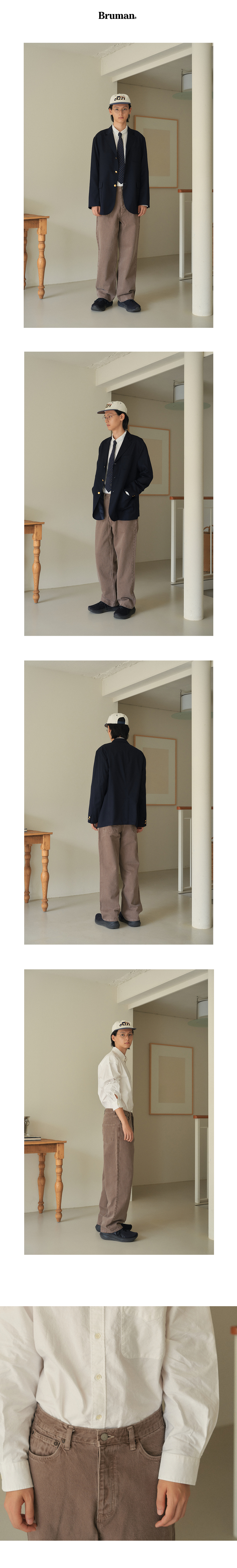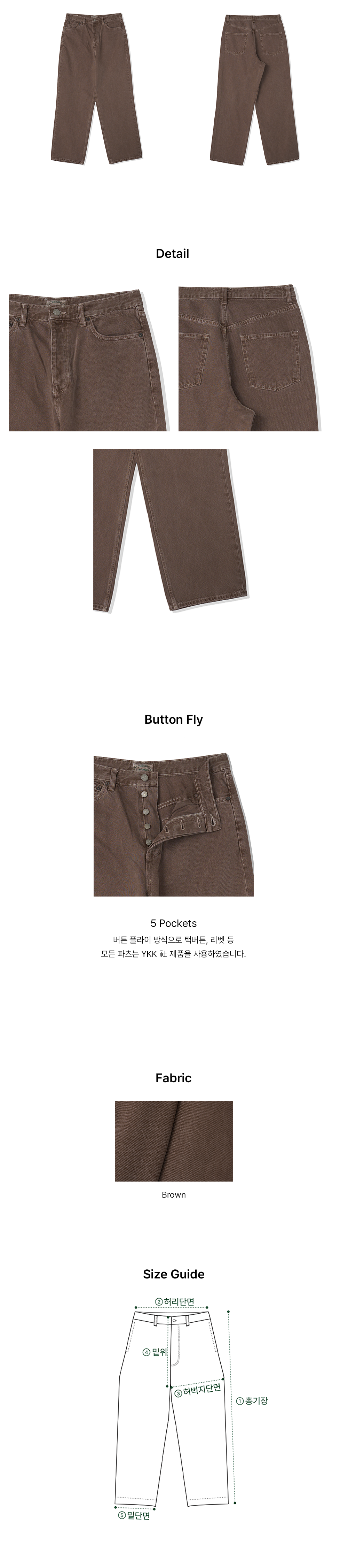 버튼 플라이 방식으로 택버튼, 리벳 등 모든 파츠는 YKK 社 제품을 사용하였습니다.