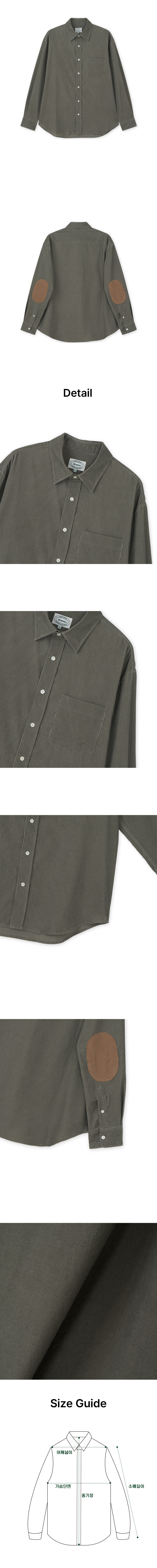 팔꿈치 배색 원단(Elbow Patch) 은 16w의 코듀로이를 사용하여 기본 셔츠에 위트있는 요소롤 더했습니다..