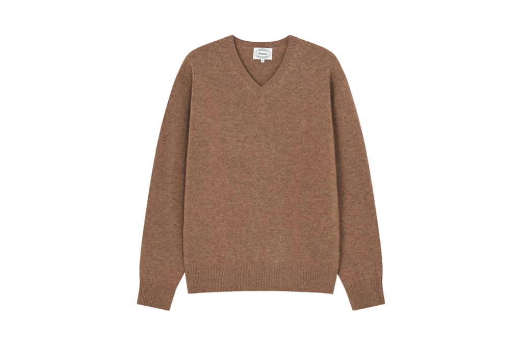 울 90%, 캐시미어 10%의 혼방 원사로 제작한 브이넥 니트입니다.